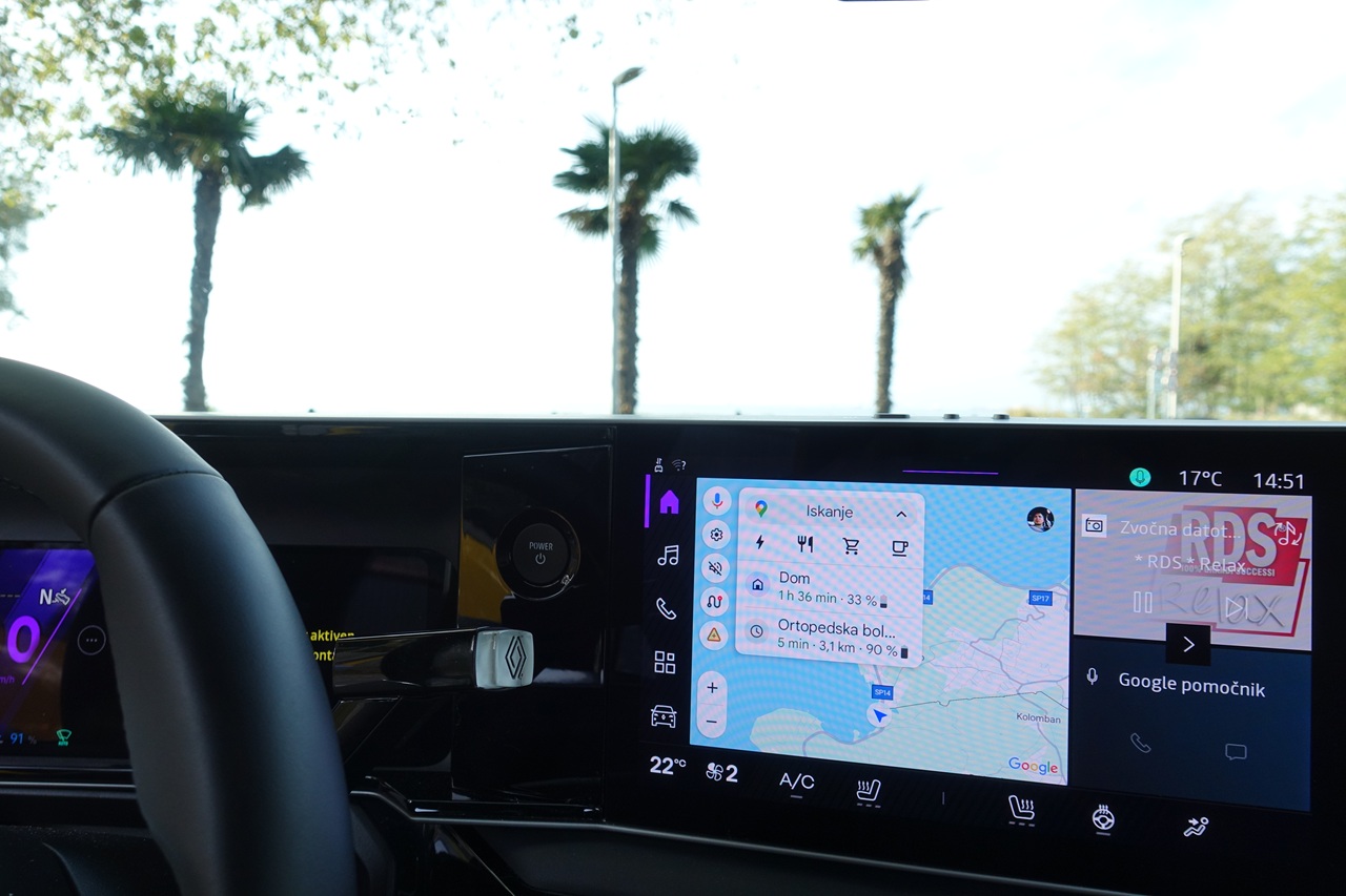 Posebnost pa je novi digitalni pomočnik »Hej, Reno« – umetno-inteligentni avatar, ki se odziva na glasovne ukaze in pomaga pri upravljanju funkcij vozila. Od iskanja polnilnic do nastavitve temperature – dovolj je, da mu to preprosto poveste. Vmesnik je pregleden in intuitiven, upravljanje pa prijetno preprosto.