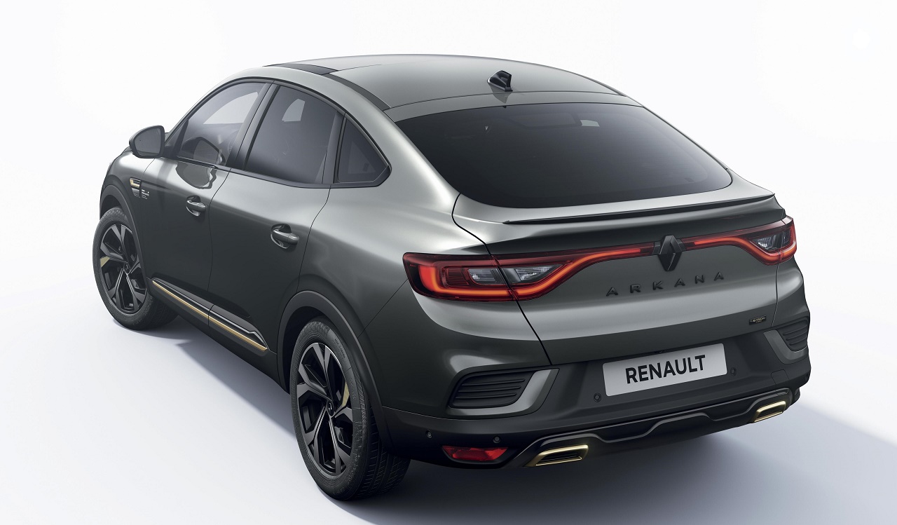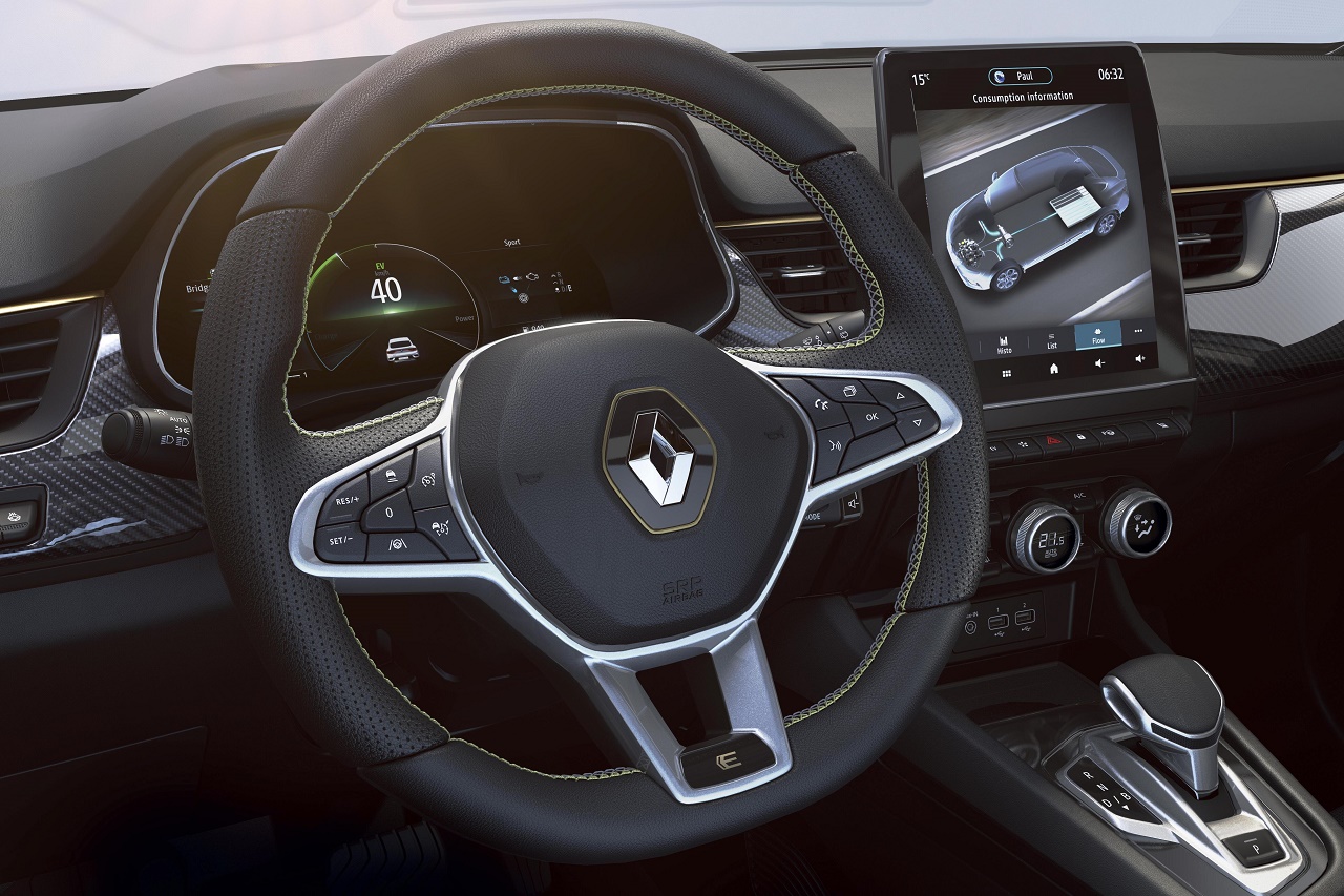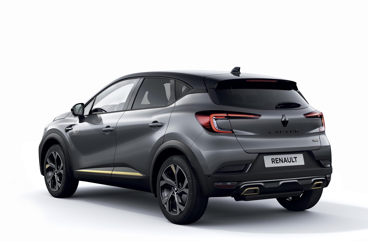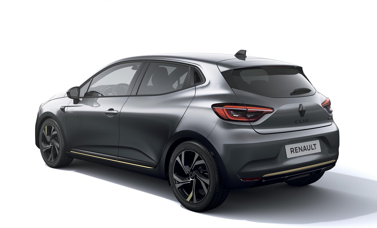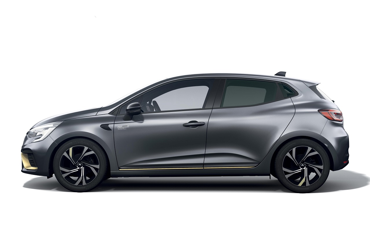 Na zunaj je ta posebna izvedenka prepoznavna po elementih tople titanove barve, kot so lamela F1® na spodnjem robu prednjega odbijača, okrasni elementi na spodnjem robu stranic in zadnjega dela karoserije ter oznake na platiščih. Še ena značilnost sta ikonični romb znamke in ime modela sijajne črne barve na prednjem oziroma zadnjem delu avtomobila. Celoten videz dopolnjuje še nova oznaka E-Tech Hybrid na vratih prtljažnika, ki jo sicer imajo vse elektrificirane različice Renaultovih modelov.