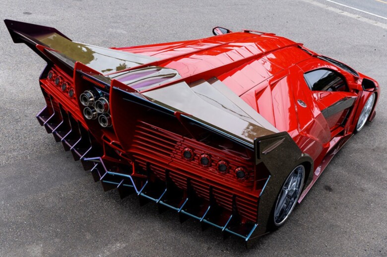 Pod radikalno preoblikovano karoserijo – ki bi lahko bila navdihnjena s preobilico japonskih animacij o robotih – se še vedno skriva pravi Lamborghini Diablo. A po predelavi je ta skoraj neprepoznaven.