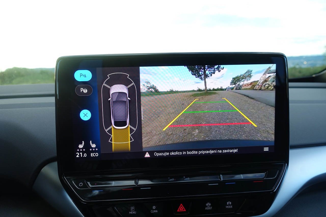 Znani so tudi zasloni paketa infotainment plus. Gre v prvi vrsti za 5,3-palčni zaslon instrumentne plošče, sicer ne velik, vendar dobro viden tudi med vožnjo. Povezan je z odličnim opcijskim projicirnim sistemom s tehnologijo obogatene resničnosti, ki projicira pomembne informacije na vetrobransko steklo v voznikovo neposredno vidno polje.. Navigaciji je namenjen 12-palčni zaslon z jasno resolucijo in z brezžično povezavo z Android Auto in Apple CarPlay. Voznik lahko računa na asistenco za ohranjanje smeri na voznem pasu, tempomat z avtomatskim uravnavanjem razdalje in sistem za nadzor prometa pred vozilom ter na udoben telefonski vmesnik s funkcijo indukcijskega polnjenja telefona. Dodatno pa si lahko, kot v testenem ID.5 omisli še različne pakete, med ostalim tudi športni paket plus in toplotno črpalko za optimalni doseg. Ta omogoča energijsko učinkovito ogrevanje notranjosti. Ob tem se z manjšo porabo energije seveda poveča doseg.