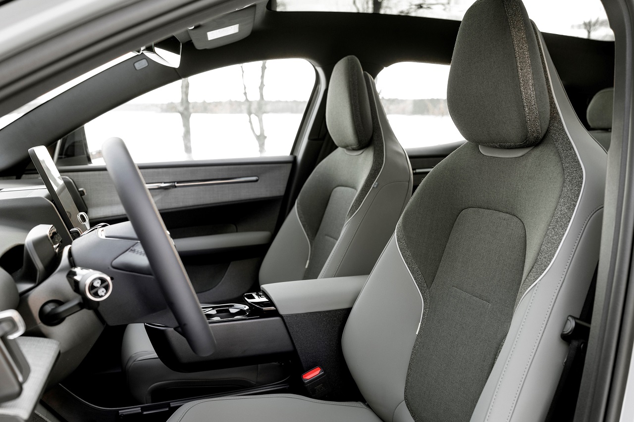 Notranjost ostaja zvesta minimalističnemu Volvovemu oblikovanju. Osrednji 12,3-palčni zaslon multimedijskega sistema, ki temelji na operacijskem sistemu Google OS, je postavljen navpično. Oblikovalci so optimizirali shranjevalne rešitve – odstranili so zvočnike iz vratnih plošč in jih vgradili v zvočno vrstico na armaturni plošči, osrednji tunel med voznikom in sovoznikom pa se lahko izvleče kot držalo za skodelico. Pod sredinsko konzolo je dodaten velik shranjevalni prostor.